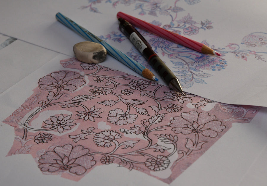 From the first sketch to intricate motifs, every saree begins on paper — where imagination, tradition, and precision take shape.